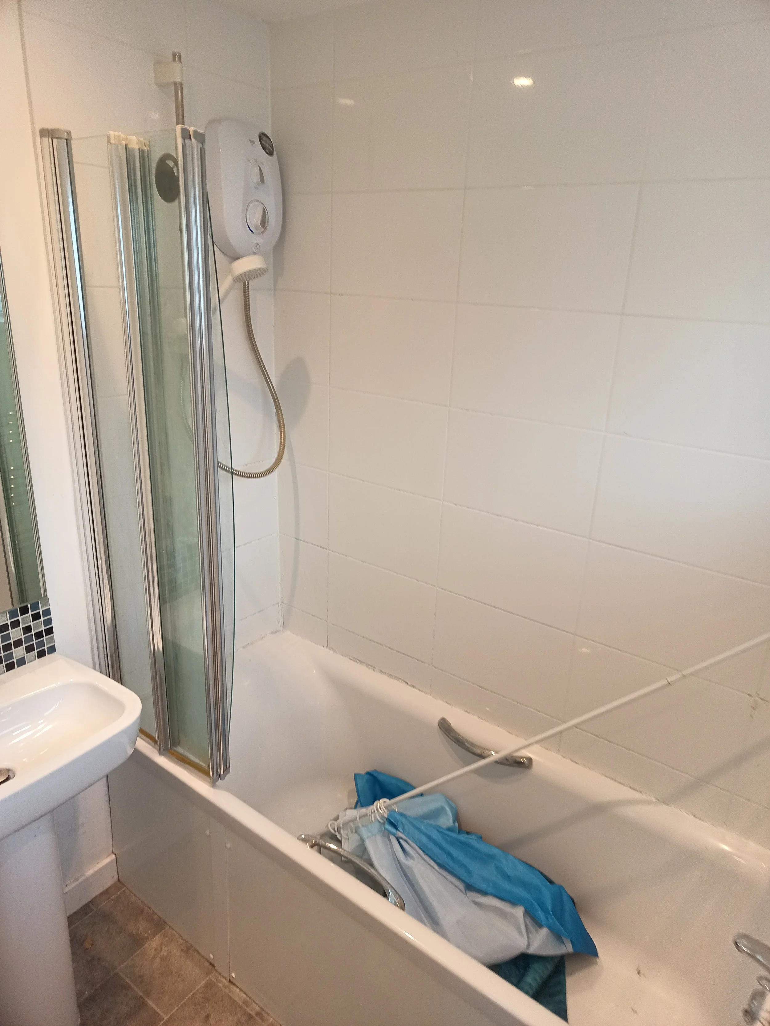 repairs shower unit, install extractor fan, grouting, silicone, redecoration.