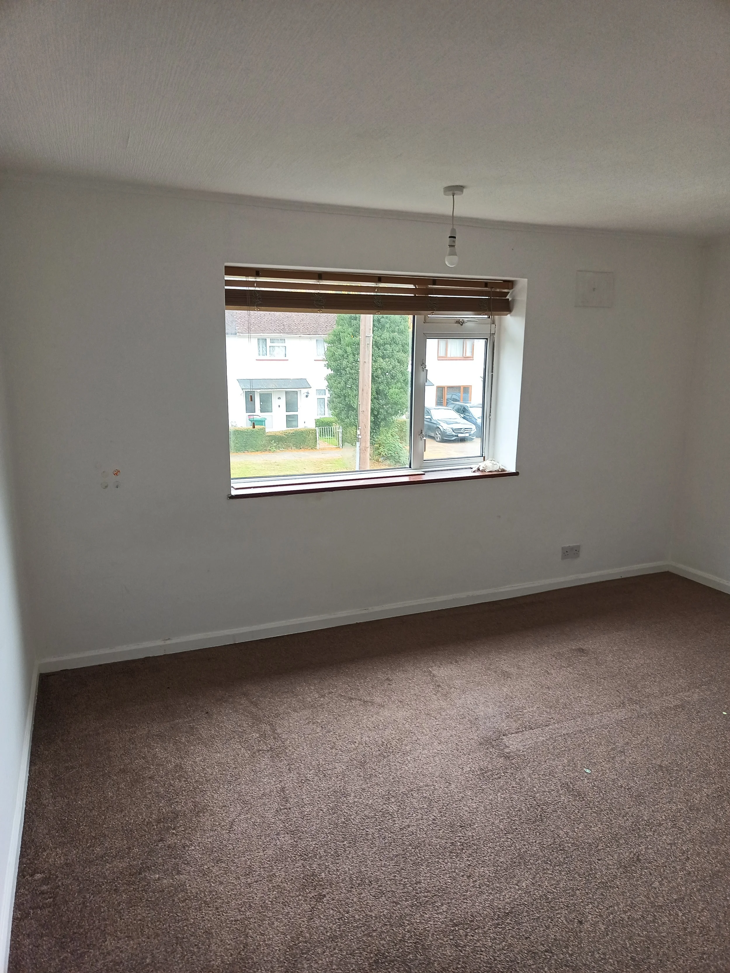 carpets, walls, ceiling, power sockets, full redecoration including install of whole window and frame.